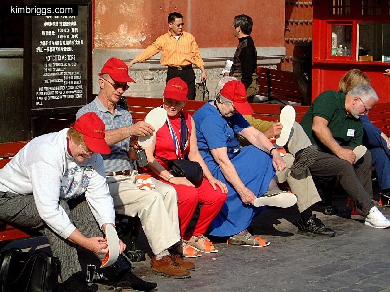 It would be a mistake to think you could visit the Forbidden City AND some other tourist site in the same day on your vacation. I spent a whole day at this site and there were many parts of it that I didn’t see. In addition to all the buildings and architecture to look at, there are also many museums. The people who are putting on foot wraps are going into the clock museum. This link explains much of the history of the Forbidden City.