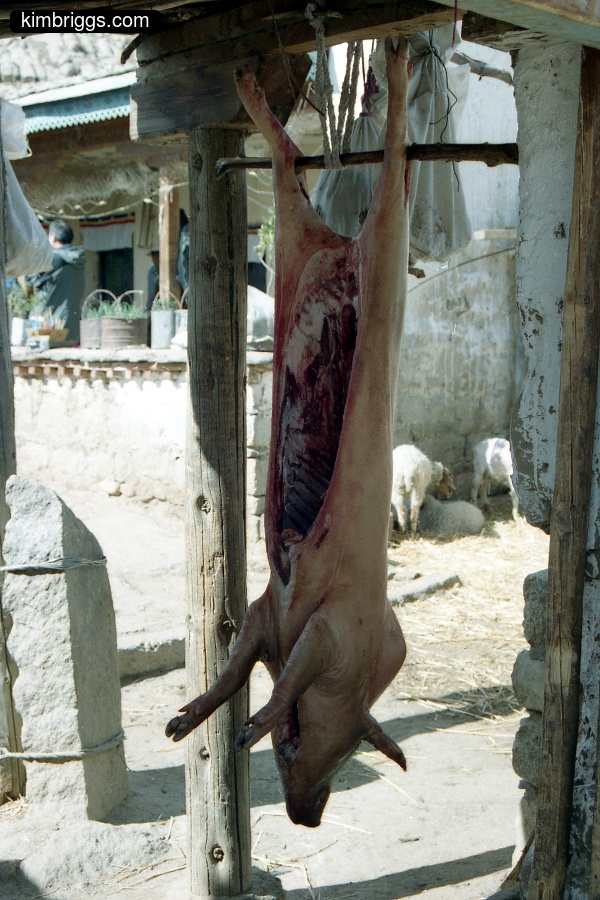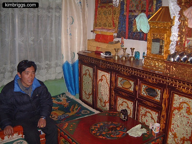 We visited a house in a nearby village before going to our guide’s home. The chapel and kitchen were a bit more modest, but they had just gotten electricity not too many years ago. The pump-house was subsidized by the government to encourage development in the area. A yak (very special animal in Tibet) is in the yard.
