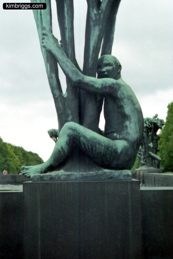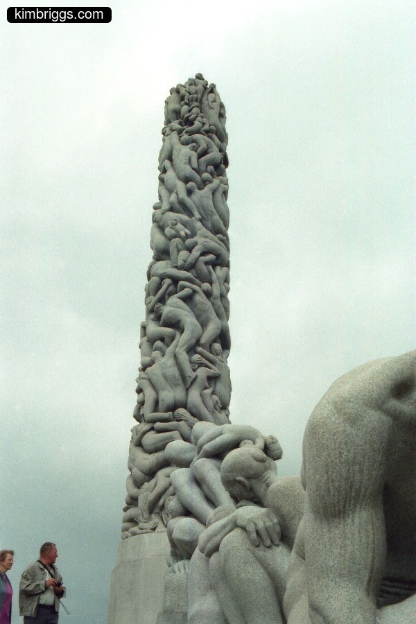 Gustav Vigeland sculpture park. Oslo’s largest public park. Gustav had some special deal with the city in which he got room and board for, like, forever… so he had to make so many sculpures for the city of Oslo (with the help of some art grad-students, I guess…?) Great place to walk. There are also pictures of the Norwegian folk museum in nearby Bygdow. The raised floors with high windows helped keep animals out. A mixture of paganism and Christianity around 1200 helped create the Stave church. Not far from this museum is a good viking ship museum (no pix).