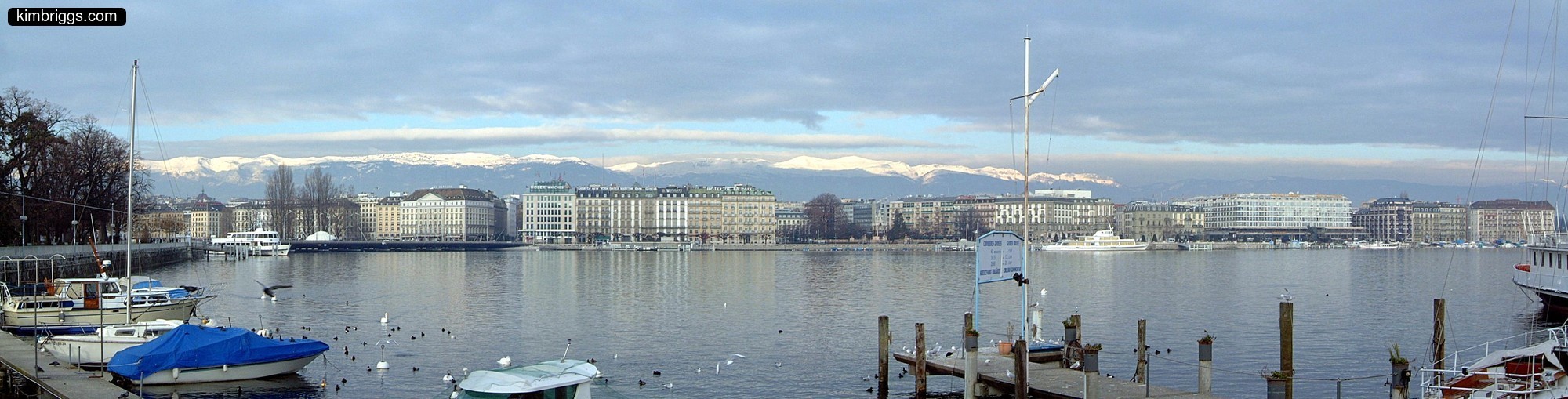 I think all the pictures below are from Genève. You can always see mountains in Switzerland, but the best view of the French Alps was from Montreux, where the colorful sunset photos were taken. The other city that is almost on the lake is Lausanne, although it is is actually the village of Ouchy that is on the water.