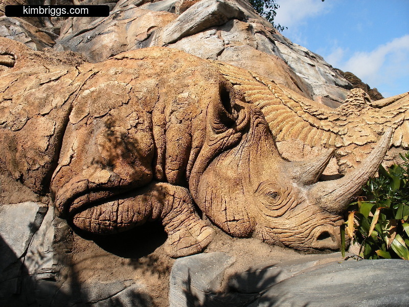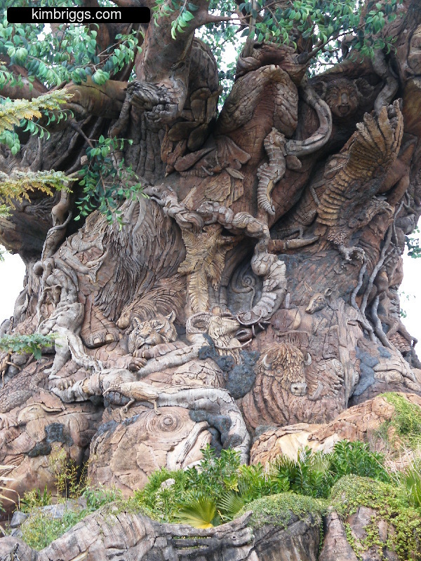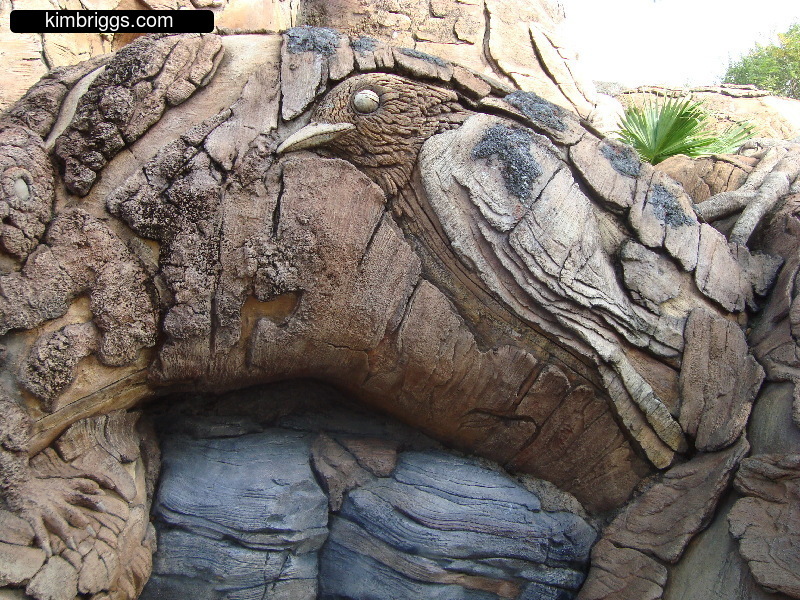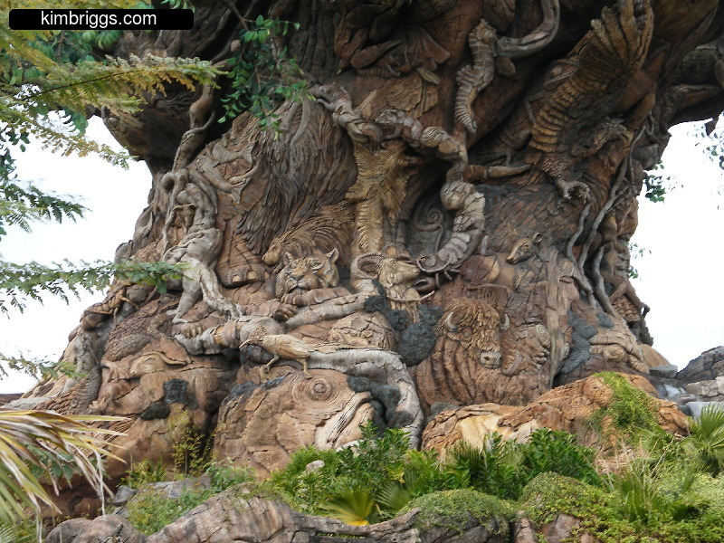 The main attraction on Discovery Island is a BIG tree with LOTS of animal shapes built into it called the “Tree of Life” and is the symbol for Animal Kingdom. Walking trails weave around the “roots” of the tree. Discovery Island also has the distinction of being in the center of all the other parts of Animal Kingdom Park. So, you can walk on different trails through it as you go back and forth to the different park areas.