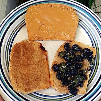Like I mentioned at the start, the best feature of this bread is the way it makes toast. Here is a serving suggestion: Cinnamon sugar, peanut butter, and smashed blueberries with honey. Enjoy.